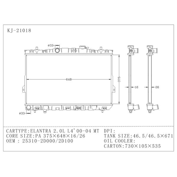2.0L L4 2000 MT 2002 , 2003 hyundai elantra radiator OEM 25310-2D000 Images |